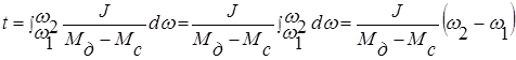 Найдем из основного уравнения электропривода время: