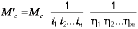 При наличии нескольких передач между двигателем и механизмом с передаточными числами i 1, i 2... in и соответствующими кпд h1, h2 … h m момент сопротивления, приведенный к скорости вала двигателя, определяется формулой: Приведение сил сопротивления производится аналогично приведению моментов. Если скорость поступательного движения V, м/c, а угловая скорость вала двигателя w д, рад/с, то где Fсм – сила сопротивления производственного механизма, Н.
