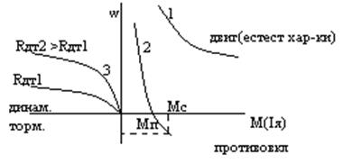 1 Двигательный режим 2 Режим противовключения возможен когда Мпуск< Мстат.нагр 3 Динамическое торможение осуществляется отключ. Дв. от сети и замыкаем сопротивления.