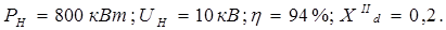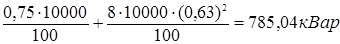 Выбираем два трансформатора мощностью 10000 кВА. Коэффициент загрузки =0, 63