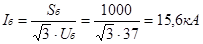 Расчет токов КЗ проведем в относительных единицах. В качестве базис-ных величин принимаем мощность Sб=1000 МВА и напряжение Uб=37 кВ, Sкз=800 MBA, тогда базисный ток будет: