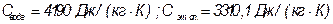 Теплоемкости воды и этилового спирта из [4]