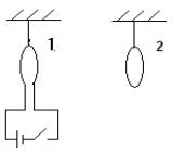 $$$ 590 Жазық тық тары бір - біріне параллель, екі катушка суретте кө рсетілгендей, ұ зын жіпке ілінген. Екінші катушка қ ысқ аша тұ йық талғ ан. Бірінші катушка ток кө зіне қ осылғ анда катушкаларда не байқ алады: