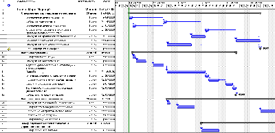 Диаграмма Ганта с назначенными ресурсами Поскольку стоимость любого из ресурсов, будь то люди, материалы или машины, можно измерить в денежном выражении, то при планировании работ и назначении на них ресурсов автоматически в программе считается и стоимость тех или иных работ, этапов и в целом проекта. Когда проект переходит в стадию исполнения, менеджер проекта и руководство компании всегда сможет отслеживать ход выполнения, фактически выполненные работы или процент их выполнения, а также фактические затраты по работам, этапам и проекту в целом. Применение программных продуктов дает возможность отслеживать в любое время в оперативном режиме исполнение проекта, вносить изменения при необходимости и принимать управленческие решения. Многие считают, что на планирование не требуется специально выделять время. Однако, как показывает практика, ошибки или небрежности в планировании, могут привести компанию к значительным финансовым (и не только) потерям. «Сэкономив» на стадии планирования, можно потратить гораздо больше времени, сил и финансов на постоянном исправлении ошибок, внесении дополнительных работ (не учли ранее!), привлечении дополнительных ресурсов (потому что не успеем!) и т.д. Есть такой афоризм: «Когда мы тратим время на планирование, его становится больше». Таким образом, календарное планирование - это итерационный процесс, позволяющий моделировать проект и получать в итоге оптимальный вариант календарного плана-графика проекта с оптимальными сроками. И помните: хорошо спланировано – наполовину сделано! Контрольные вопросы: