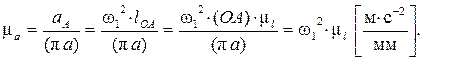 Построение плана ускорений ведём в следующей последовательности. Строим решение первого векторного уравнения, указанного выше, для чего от полюса плана p откладываем отрезок (p a), изображающий ускорение