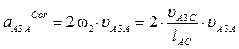 (так как w2 = w3 и w3 = u A3C / lAC) и имеющее направление вектора относительной скорости uA3A, повёрнутого на 90° в направлении угловой скорости w2 переносного движения (движения звена 2);