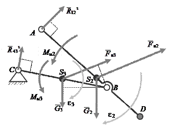 Силовой расчёт группы звеньев 2 и 3 Расчёт начинаем с присоединённой группы Ассура, затем переходим к расчёту ведущего звена. Группа Ассура является статически определимой системой, поэтому используем известные из теоретической механики уравнения равновесия всей группы или отдельных её звеньев в форме