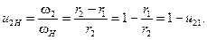 Уравнение (19) теперь можно переписать так: w1 = u 12( H )× w2 + u 1 H (2)× w H. (20) Из формулы (16) передаточное отношение может быть представлено в следующем виде: u 1 H (2) = 1 – u 12( H ). (21) Подставляя выражение для из уравнения (21) в уравнение (20), имеем w1 = u 12( H )× w2 + (1 – u 12( H )) × w H, откуда получаем w1 = w H + u 12( H )× (w2 – w H), или