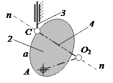 2 - сурет 3 – сурет Қ арастырылғ ан ауыстырушы механизм алу тә сілін кең ейтуге болады. Буындарының элементтері кез келген берілген a жә не b қ исық болатын жоғ ары жұ пты механизм берілсін дейік (2 – сурет). Ауыстырушы механизм сұ лбасын тұ рғ ызу ү шін қ исық тар жанасатын нү кте С арқ ылы нормаль nn жү ргіземіз жә не оның бойынан қ исық тар O 2, O 3 центрлерін белгілейміз. Жанасу нү ктесінде шең бер қ исық тығ ы жә не қ исық қ исық тығ ы екінші ретті туындысына дейін эквивалентті болатындығ ы дифференциальдық геометриядан белгілі, сондық тан, ауыстырушы механизм негізгі берілген механизміне сол дә режеде эквивалентті, яғ ни механизмдердің аттас нү ктелерінің орындары, жылдамдық тары жә не ү деулері бірдей болады. Егер буындардың жанасатын бір элементі қ андай да қ исық, ал екіншісі тү зу b болса, онда екінші профилінің қ исық тығ ы шексіздікте болады (3 – сурет). Бұ л жағ дайда ауыстырушы 4 – буын O 2 қ исық тық центрінде 2 – буын элементімен V – класс айналмалы жұ п арқ ылы жалғ асады. Буындарының элементтері кез келген қ исық жә не нү кте болатын жоғ ары жұ пты жә не оны ауыстыратын кривошип – жылжымалы механизм сұ лбасы Келесі мү мкін болатын жағ дай - жанасатын элементтің біреуі қ исық a, ал екіншісі нү кте C (4 – сурет). Бұ л жағ дайда С элементінің қ исық тық центрі С нү ктесінде тү йіседі, сондық тан, ауыстырушы 4 – буын O 2 қ исық тық центрінде 2 – буын элементімен V – класс айналмалы жұ п арқ ылы, ал С нү ктесінде 3 – буынымен V – класс айналмалы жұ п арқ ылы жалғ асады.