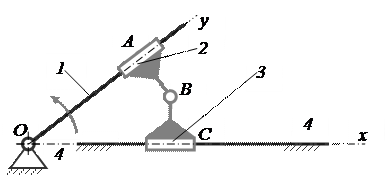 5 - сурет Топсалы тө рт буын қ ұ рамында жетекші буынғ а жә не тірекке жалғ асқ ан бірінші тү рдегі екінші класты Ассур тобы болады. Бұ л механизм сұ лбасы 5 – суретте кө рсетілген. Механизм 1 – жетекші буынғ а 2 жә не 3 буындардың қ ұ рылым тобын жалғ астыру арқ ылы қ ұ рылғ ан. Қ ұ рамына А, В жә не С айналмалы кинематикалық жұ птары енеді. Кривошипті – жылжымалы механизмнің қ ұ рамында жетекші буынғ а жә не тірекке жалғ асқ ан екінші тү рдегі екінші класты Ассур тобы болады. Бұ л механизм сұ лбасы 6 – суретте кө рсетілген. Механизм 1 – жетекші буынғ а 2 жә не 3 буындардың қ ұ рылым тобын жалғ астыру арқ ылы қ ұ рылғ ан. Қ ұ рамына А, жә не В айналмалы жә не С ілгерілемелі кинематикалық жұ птары енеді.