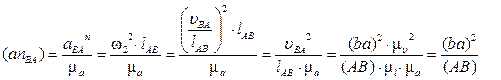 мұ ндағ ы Айналмалы қ озғ алыстағ ы АВ буыны В нү ктесінің полюс А – ғ а қ атысты нормаль қ ұ раушы ү деуі мынадай формуламен анық талады: