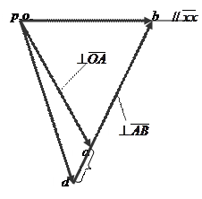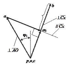 Ү деулер жобасын тұ рғ ызуды тө мендегі тә ртіп тізбегі бойынша жү ргіземіз. Жоғ арыда кө рсетілген бірінші векторлық тең деудің шешімін тұ рғ ызамыз, ол ү шін OA тү зуіне параллель, жоба полюсі p - ден