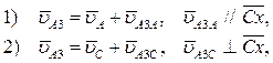 (w2 = w3 и w3 = u A3C / lAC болғ андық тан) жә не uA3A жылдамдық векторының бағ ытын, тасымал қ озғ алыс w2 бұ рыштық жылдамдық бағ ытымен 90° бұ рышқ а бұ рғ андағ ы бағ ытты қ абылдайды (2 – буынның қ озғ алысы);