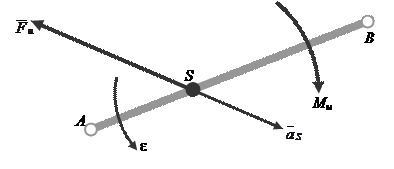 1 – сурет Жазық параллель қ озғ алыстағ ы жә не оның қ озғ алыс жазық тығ ына параллель симметриялы жазық тығ ы бар буынды қ арастырамыз. Инерция кү штерінің келтіру центрі ретінде оның масса центрі алынады (1 – сурет). Онда қ ос кү ш инерция момент шамасына тең инерция кү штерінің негізгі моментінің ө рнегі мынадай формуламен анық талады: Mu = - IS × e, (2) мұ ндағ ы IS [кг× м 2] - буынның центрлік инерция моменті, e [c – 2] – буынның бұ рыштық жылдамдығ ы. Инерция моментінің ө лшем бірлігі [кг× м× с – 2] = [Н× м]. Ә сер етуші жазық тығ ы буынның қ озғ алыс жазық тығ ына параллель, буынның бұ рыштық ү деуі бағ ытына қ арама – қ арсы бағ ытталады. Сонымен, жалпы жағ дайда буынның инерция кү штері S нү ктесінетү сірілген бір Буынның инерция кү штерінің жеке жағ дайлары