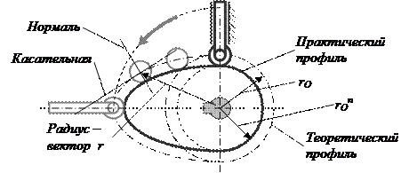 Берілген цикл диаграммасы орындалу ү шін жә не жетектегі буын берілген тең деумен қ озғ алу ү шін (s = f (t)), жұ дырық ша тиісті ө лшемінде болуы керек, ал оның профилі тиісті қ исық сызық тармен қ ұ рылуы керек. Егер штанганың ұ шында ролик болса, онда екі профилі қ арастырылады: практикалық жә не теориялық.