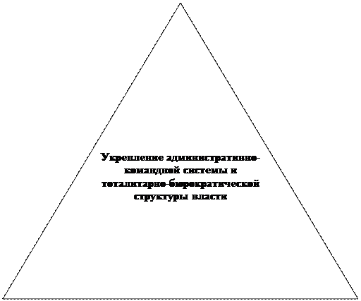 | Укрепление обороны, но - создание условий для экспансии сталинского руководства (складывание административно-хоз-й систе-мы, основанной на сверхцентрализации и к-административных методах)