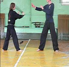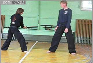 Аналогично, Номер 1 наносит удар по правой стороне туловища номера 2. Номер 2 блокирует мечом правую сторону. Migikakoi – приём блокирования правой стороны корпуса и талии. 4 Shitagakoi (приём блокирования нижней части)