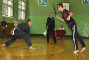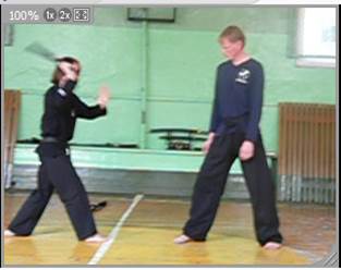 Нанесение одиночных ударов оружием по воздуху; Men uti (нанесение удара по противникам) команда: menwoute < примечание: удар наносится в лоб> Меч держат в позиции chudan
