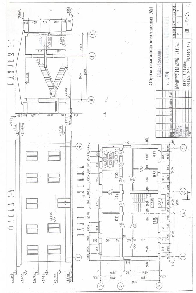 Задание № 1 План, фасад, разрез здания, (формат А2), Цель задания: Изучить правила вычерчивания чертежей планов, фасадов, разрезов зданий в соответствии с требованиями СПДС. С одержание задания: по выданном заданию выполнить чертёж плана здания, фасада, разреза здания. Варианты заданий и образец выполненной работы даны в Таблице 1 на странице. Методические указания Планом здания называется горизонтальный разрез здания на уровне оконных проёмов чуть выше подоконника. Планы вычерчиваются в масштабах 1: 50, 1: 100, 1: 200.