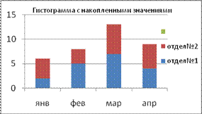 Б) с накопленными значениями (абсолютные значения, процентный формат) Используются для представления динамики данных, итоговых значений, а также доли каждой точки значений в категории.