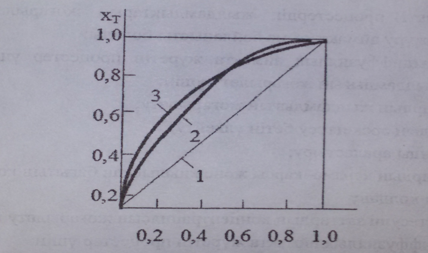 Анық таушы саты: 1-сыртқ ы диффузия; 2-ішкі диффузия; 3-химиялық реакция.3.11 сурет-Айналдыру дә режесінің Хт салыстырмалы ә рекеттесу уақ ытына тә уелділігі.