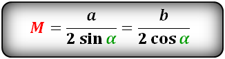Длина медианы прямоугольного треугольника Медиана, отрезок |CO|, исходящий из вершины прямого угла BCA и делящий гипотенузу c, пополам. Медиана в прямоугольном треугольнике (M), равна, радиусу описанной окружности (R).