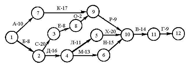 - барлық кешен жұ мысын бө лек кезекті кезең дерге бө лшектеу, олардың ә р қ айсысы ең бек шығ ындарын ведомсты нормасымен сә йкес бригада орындайды; - барлық оқ иғ аларды суреттеу жә не анық тау (басқ а жұ мысты бастау ү шін қ ажетті жұ мыс нә тижесі); - жө ндеудің қ ажетті соң ғ ы нә тижесіне жету ү шін фактіге негізделген уақ ыт шығ ынының жә не уақ ыт нормативінің есебімен барлық жұ мысты анық тау; - тораптық графикті қ ұ растыру; - бағ а жү йесі негізінде график бойынша ә р жұ мыстың орындалу уақ ытын анық тау; - кү рделі жолдардың есебі, яғ ни, барлық жұ мыстың орындалуының ең ұ зақ уақ ыттағ ы жолы; - резервті уақ ытты анық тау; - графиктің талдауы жә не оптимизациясы жә не кү рделі жол уақ ытын қ ысқ арту бойынша шараларды ө ң деу; - тораптық график кө мегімен жұ мыс жү рісін басқ ару. Тү йіспелі торап (2.2 сурет) бө лек операциялардың жә не жұ мыс элементтерінің орындалу схемасын жабдық ты жө ндеу бойынша, сондай-ақ, олардың ө зара байланысын, ретін, жұ мысты орындауын бақ ылау жә не технологиялық кезекпен орындалуын ұ сынады. Оғ ан жұ мыстарды жә не оқ иғ аларды тү сіреді. Ә р оқ иғ а жқ мыстың басталуымен жә не аяқ талуымен сипатталады, ал жұ мыс келесіге алдың ғ ысынан ө тетін жетілдірілуі қ ажет ә рекетті білдіреді. Жұ мыс графикте шең бермен белгіленіп, оқ иғ алар арасындағ ы байланысты кө рсететін нұ сқ ағ ышпен белгіленеді. Жұ мыс нақ ты, анық бейнеленген жә не жауапты орындаушысы болуы керек; оның ұ зақ тығ ы сағ атпен немесе кү нмен анық талады. Тораптық графикті ө ң деудегң маң ызды элемент – кү рделі жол ұ зақ тығ ын анық тау. Графикте жолдар басындағ ы жә не соң ындағ ы оқ иғ аларды кө рсететін жұ мыстардың ө зара байланысын білдіретін сызық тармен келтірілген. Сонымен, 2.2-суретте 1-оқ иғ а А-10 и Б-8 жұ мыс басы болып, ал 2 жә не 7-оқ иғ а осы жұ мыстардың нә тижелері болып табылады. Ө з кезегінде, 2 жә не 7-оқ иғ алар, алдың ғ ы А-10 жә не Б-8 жұ мысының келешек нә тижесі, К-17, С-20 жә не Д-16, т.б. жұ мыс басы болып табылады. Нұ сқ ағ ыш графигін қ ұ растыру кезінде шығ атын жұ мыс оқ иғ асының нө мірі ол кіретін жердің оқ иғ а нө мірінен аз боп, солдан оң ғ а қ арай жү ру керек. Тораптық графикте кіретін жә не шығ атын жұ мыстар ерекшеленеді. Графикте 2-оқ иғ а жұ мысы ү шін Б-8 кіретін, ал Д-16 мен С-20 –шығ атын жұ мыстар. Нұ сқ ағ ыш ү стіндегі ә ріп жұ мыс индексін, ал сан – жұ мыс ұ зақ тылығ ын кө рсетеді. Жө ндеудің тораптық графигінде барлық кешен жұ мысының жалпы аяқ талу уақ ытына тә уелді таратушы қ ондырғ ылардың (майлы ажыратқ ышты, трансформаторларды, вентиляцияны жә не т.б. жө ндеу) жө ндеуі бойынша бө лек жұ мыстар анық кө рсетілген. Бұ л мерзім шығ атын оқ иғ адан аяқ таушы оқ иғ ағ а дейінгі кішігірім ұ зақ тылық жө ндеу жұ мысын орындау жү йелілігімен анық талады. Бұ л жү йелілік тораптық графиктегі кү рделі жолды (қ алың сызық пен белгіленген) анық тайды. Трансформатордың кү рделі жө ндеуі кезінде жұ мыс жү ргізу жү йелілігі типтік технологиялық ү рдістің тораптық моделімен анық талады (2.3-сурет). Жө ндеудің тораптық графигі жү йеліліктің, жұ мыс ө ндірісінің мерзімі мен ұ зақ тылығ ының, жұ мыс ауысымының, жө ндеуші жұ мысшылардың кә сіби жә не сандық қ ұ рамының кө рсеткішімен қ ондырғ ыны жө ндеу ү рдісінің (қ ұ рамдық бө лігі немесе жү йесі) қ ұ рамдық графикалық бейнелеу, ұ йымдастыру-басқ ару қ ұ жаты болып табылады. Сетевой график ремонта разрабатывается в соответс