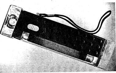 Рис. 1. Ультрафиолетовый осветитель. Оптические приборы. — это увеличительные приспособления, позволяющие расширить диапазон чувствительности глаза. В первую очередь к ним относятся всевозможные лупы: складные, штативные, с подсветкой, измерительные, дактилоскопические и др. Значительно реже при производстве следственных действий используются микроскопы. Как правило, они применяются на стадии исследования вещественных доказательств. Следы рук на глянцевых поверхностях выявляют при осмотре в косопадающем свете, а если объект прозрачен, то при изучении его на просвет; в труднодоступных для осмотра местах используются осветитель и специальная зеркальная приставка. Невидимые и слабовидимые следы выявляются с помощью различных мелкодисперсных порошков окиси меди, окиси свинца, графита и др. (в том числе люминесцирующих в УФ-лучах), которые наносятся с помощью специальных кисточек, пульверизаторов, аэрозольных распылителей; обработкой парами йода, цианакрилата, некоторыми специальными реактивами (например, раствором нингидрина в ацетоне). Визуализация невидимых следов рук производится также при воздействии на них лазерного излучения (которое возбуждает флюоресценцию потожирового вещества, образующего след) или путем напыления на предмет-носитель в вакууме тонких пленок тяжелых металлов. Для обнаружения металлических объектов используются металлоискатели индукционные армейского образца (ИМП) и специально изготовленные для криминалистических целей магнитные искатели-подъемники (МИП " ГАММА"). Их недостатком является одинаковое реагирование на черные и цветные металлы. Более удобны приборы с меняющейся системой усиления, позволяющие различать массу искомого объекта и других металлических предметов, создающих помехи (рис. 2).