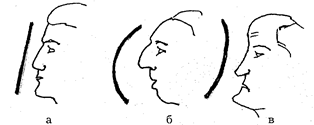 Рис. 6. Контур лица в профиль: а — прямой, б — выпуклый, в — вогнутый.