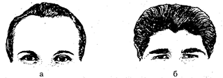Рис. 7. Высота лба: а — высокий, б — низкий. Глава 19. Исследование внешних признаков человека
