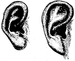 Рис. 29. Форма мочки уха (слева направо): треугольная, прямоугольная, закругленная..