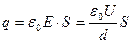 Вычислим емкость плоского конденсатора. Поверхностная плотность заряда σ = q/S, тогда напряженность электрического поля