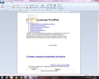 3. Создали документ, содержащий текст справки WordPad по теме Использование редактора WordPad.