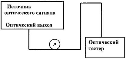 2. С помощью одномодового (желтый цвет защитной оболочки) оптического шнура с коннекторами типа FC соедините оптический выход электронного блока ИОС со входом оптического тестера ОТ (рис.Л1.1)