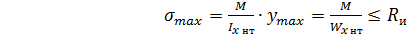 Нормальные напряжения в балке, вызываемые действием изгибающих моментов, определяются по зависимости