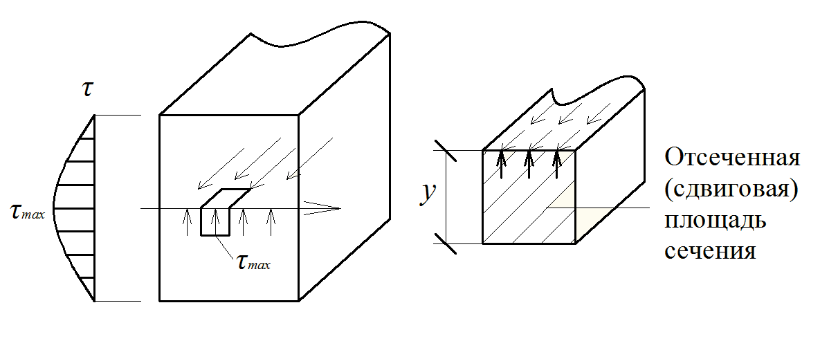 Рис. 2.8. Распределение касательных напряжений в изгибаемом элементе