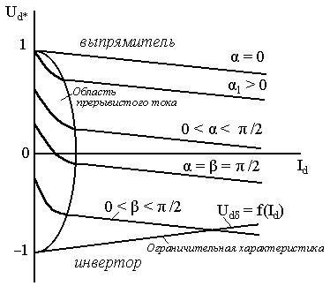 Рівняння обмежувальної характеристики інвертора і рівняння комутації знаходяться з рівняння зовнішньої характеристики КВ підстановкою значення кута, який відповідає заданому режиму і способу переведення ТП в інверторний режим: a = p - b