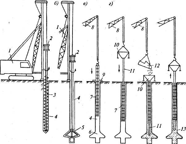 Виды набивных свай и технология их устройства.