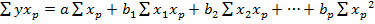 Y - матриц-столбец (n× 1) исходных значений зависимой переменной y; X - матрица (p+1× n) исходных значений независимых переменных xi, в которой первый столбец из единиц можно рассматривать как значения «фиктивной» переменной, соответствующей коэффициенту а. В этих обозначениях система (7) примет вид