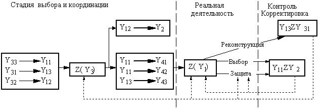 В блоке У3 выделено две группы модулей: (У31, У32, У33) - формирование изделия и его техническое и организационное обеспечение, (У34) - изменение изделия и его ресурсного обеспечения (например, модернизация его). В блоке У4 выделены три типа структурных модулей. На стадии планирования и координации модули У41, У42, У43отвечают за распределение входных потоков, а на стадии выполнения плана резервируют продукты и оснащение, необходимые для функционирования системы. По фазам принимаемых решений можно выделить два вида блоков, т.е. всего шесть видов структурных звеньев. Следовательно, в модели нормативной структуры управления выделены 17 типов структурных модулей, для каждого из которых теоретически можно установить основные направления деятельности, область ответственности и характер принимаемых решений. Эта модель может быть использована для решения задач анализа и синтеза структур управления. В первом случае сопоставление модели с существующей структурой позволяет оценить полноту заполнения управленческими функциями областей ответственности каждого структурного элемента. Алгоритм анализа состоит в следующем: 1. Анализируются функции управления, производится их разделение на группы в соответствии с перечнем структурных модулей нормативной модели. 2. Оценивается " представительность" каждой группы в соответственно нормативно выделенном блоке структуры. 3. Устанавливаются наименее охваченные сферы управления. 4. Дополняется список функций управления. При синтезе модуль нормативной структуры - основа установления идентификационных характеристик, по которым проектируются новые подразделения в структуре.