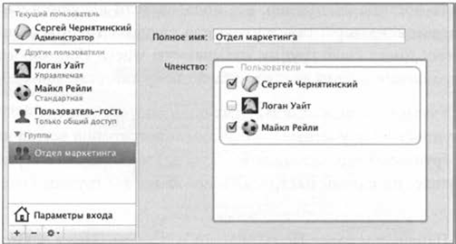 Негізінде, есептік жазбалардың топтары тек қ ана есептік жазбалардың тізімі ғ ана болып табылады. Файлдар мен папкаларғ а кіруді қ атаң бақ ылау ү шін қ олданылады. Lion жү йесі процестер мен ортақ енулердің қ ауіпсіздігін қ амтамасыз етуге арналғ ан ондағ ан топтардан тұ рады. Мысалы, барлық қ олданушылар staff тобының мү шесі, администратор admin тобының мү шесі, ал root ө зіне тә н wheel тобын қ ұ райды. Қ олданушылар мен Топтар настройкаларында не кө рсетілгеніне тә уелсіз стандартты қ олданушылар staff тобының, ал администратор admin тобының мү шесі болып қ ала береді. Жаң а есептік жазбалардын топтарын қ ұ ру ү шін: 1. Қ олданушылар мен Топтар настройкаларына кіріп, администратордың аты мен қ ұ пия сө зін енгізің із. 2. Жаң а есептік жазбалардын тобын қ ұ ру ү шін, қ олданушылар тізімінің тө мен жағ ындағ ы " +" плюс батырмасын басың ыз. 3. Жаң а(New Account) Мә зірден Топты(Group) таң даң ыз.