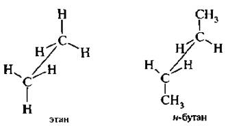 Стереоформулы. Для изображения пространственного строения молекулы на плоскости чаще всего используют стереохимические и перспективные формулы, а также проекционные формулы Ньюмена. В стереахимических формулах химические связи, расположенные в плоскости чертежа, изображают обычной чертой; связи, находящиеся над плоскостью – жирным клином или жирной чертой, а расположенные псщ плоскостью – штриховым клином или пунктирной линией: