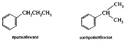 Изомерия гомологов бензола обусловлена разными структурами, числом и положением заместителей в бензольном кольце. Для однозамещенных гомологов бензола характерна изомерия, связанная с разной структурой заместителя.