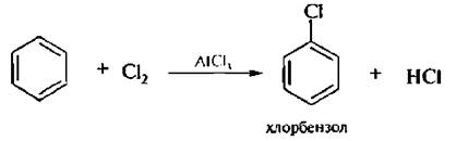 5. Реакциюгалогенироваиия аренов. Реакция протекает по ионному механизму в присутствии катализаторов хлоридов металлов АlСl3, FeBr3, SbCl3: