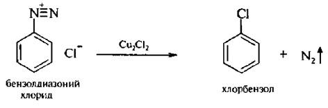 Катализатор способствует образованию положительного иона галогена, который осуществляет замещение в бензольном ядре. 6. Реакцию солей арилдиазония с галогеиидами меди: