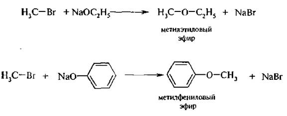 2. Реакция Вильямсона. Эта реакция является одним из лучших способов получения простых эфиров. Она заключается во взаимодействии галогеналканов с алкоголятами или фенолятами.