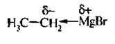 Магнийорганические соединения являются сильными нуклеофильными реагентами и сильными основаниями. Их активность обусловлена полярностью связи углерод-магний:
