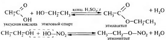 2. Образование сложных эфиров. Спирты реагируют с органическими и кислородсодержащими минеральными кислотами с образованием сложных эфиров.