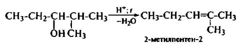 Следует помнить, что спирты, в которых с атомом углерода, несушим гидроксильную группу, связаны неравноценные атомы углерода, отщепление молекулы воды происходит по правилу Зайцева, т. е. водород уходит от соседнего, менее гидрогенизированного атома углерода: