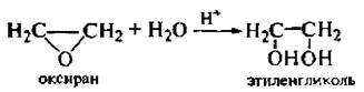 Гидратация оксирана и его производных проводится в кислой среде и сопровождается раскрытием цикла: